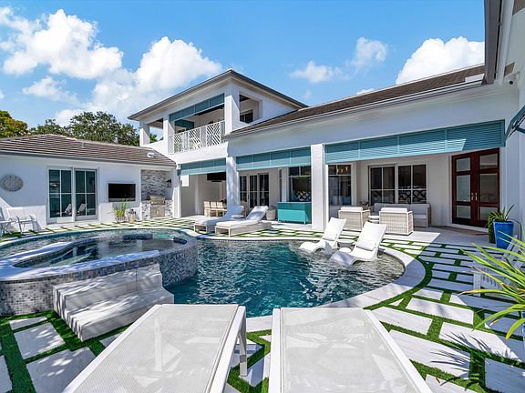 Experience luxury living in this exceptional 4-bedroom, 3.5-bathroom residence, meticulously renovated to showcase sophisticated coastal elegance. This exclusive home is nestled within the Admirals Cove Golf Village community with only 120 homes, overlooking a large tranquil lake with fountain and the first hole of the West course, creating a perfect setting for relaxation and entertainment. Features include high-end appliances, impact doors and windows, custom wine & coffee bar, a full home generator, and advanced security systems that ensure convenience and peace of mind.Every room offers captivating views of the courtyard pool and spa with water features, inviting you to indulge in year-round or seasonal enjoyment. The first-floor master suite serves as a private retreat, complemented by an upstairs VIP suite and a welcoming guest house. Immerse yourself in a refined lifestyle defined by elegance, community, and exceptional amenities in this truly luxurious oasis.