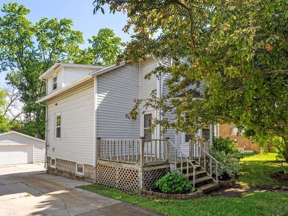 Charming 3 bedroom, 1.5 bathroom two-story home featuring a fenced backyard perfect for kids and furry friends & spacious 2.5 car detached garage. The expansive lot features lush greenery & mature trees creating a serene retreat. The open concept living room and kitchen boast large windows that flood the space with natural light. The kitchen includes a butcher block island with built-in storage and abundant cabinets for all your culinary needs. Convenience is key with first-floor laundry facilities. The generously sized bedrooms provide ample space for relaxation and personalization. This home offers a perfect blend of comfort, functionality, and outdoor enjoyment.