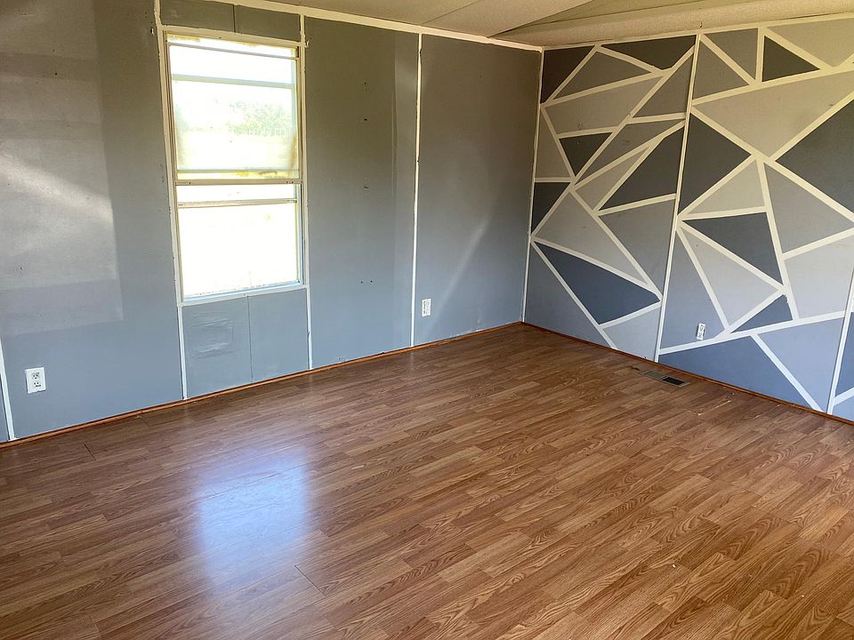 Home has open floor plan, kitchen includes refrigerator, stove and dishwasher. New laminate flooring three bedrooms and two baths. Mobile home is on 2-acre lot. Outside dogs only If you're interested in home call if no answer, please text me and I'll call you back.