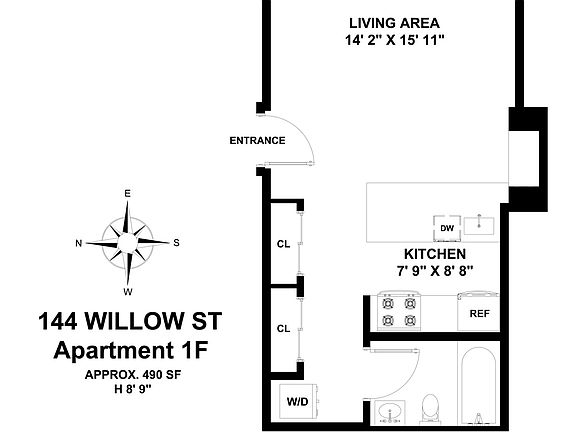 - Total interior livable area: 490 sqft