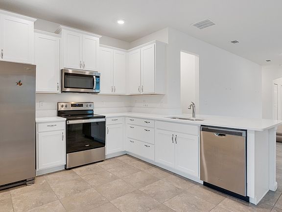 Peninsula eating areaQuartz countertopsFront porchSplit bedroom planWalk in showerPatio off kitchenStainless steel appliances
