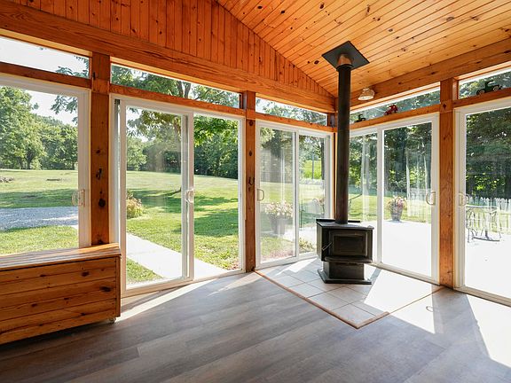 Brick ranch sitting on an amazing 6-acre lot with a full basement with walkout! Once you arrive at this home you will not want to leave! This home has new gutters and downspouts, updated windows and water heater! Freshly painted throughout. Home is equipped with high-speed internet for those who work from home! This home has an amazing sunroom which features a cathedral ceiling, brand-new LVP flooring and a wood burning stove so you can relax and watch the snow cover the amazing yard during the winter months. The MASSIVE 30x48 pole barn has 16' trusses so there is plenty of height to park your RV or boat inside when not in use. The barn also has 50 amp electric. There is an amazing 20X20 stamped concrete patio to relax on as well as a 7X23 front porch. This property is truly a must see and is only 8 miles from the interstate! With high-speed internet, fenced in acreage, a sunroom and a massive pole barn you will never want to leave! Come and see this property soon because it will not last long! Washer and dryer do not stay. Buyer and Buyer's Agent to verify all information.