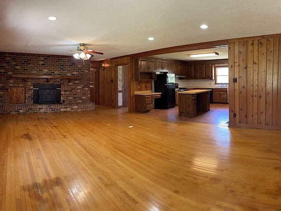 - Bedroom on Main Level, Ceiling Fan(s), Cathedral Ceiling(s), Dining Area, Eat-in Kitchen, Fireplace, Kitchen Island, Laminate Counters, Bath in Primary Bedroom, Main Level Primary, Pantry, Recessed Lighting, Skylights, Paneling/Wainscoting