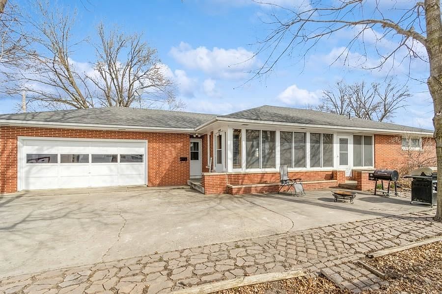 You will be impressed with this mid-century, ranch style home, perfectly crafted, full of charm and character throughout. The oversized, light filled living room is a great spot for entertaining with large picture windows and recessed lighting. The kitchen includes stainless steel appliances featuring built-in oven, breakfast bar with seating, and original sophisticated cabinetry. Located off the kitchen is the dining room with eye catching built-ins and planter box. Two spacious bedrooms with rich hardwood floors and impressive deep closets with a Jack and Jill bathroom. Additional conveniently located full bathroom with tub/shower, linen closet, LVP flooring and vanity. You will appreciate the endless storage throughout this home. Oversized laundry room with washer and dryer included, lots of storage cabinetry and convenient half bath. The all brick exterior adds to the home's appeal with an inviting sunroom off the front. Attached heated garage with storage room. This property is a must see!