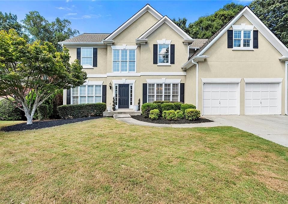 Desirable Grovehurst subdivision in the Walton High School district. Spacious and bright hard coat stucco with 3 sides concrete siding, 6 bedroom and 4 full baths, full finished basement, and private backyard with room for a pool. Enter the 2 story foyer overlooking the spacious living room on one side and the separate dining room that seats 12+ on the other side. Two story fireside family room overlooking the spacious chef’s kitchen with granite countertops, tile backsplash, stainless steel appliances including refrigerator and gas 5 burner stove with hood, microwave, and dishwasher. Bedroom suite on the main with full bath plus a large laundry room with sink that includes washer and dryer. Upstairs boasts a monster primary suite with sitting area, double vanity, separate shower, jetted tub, and huge walk-in closet. Three additional bedrooms and a full bath complete this level. Finished terrace level has library or bedroom, media area, game room, full bath, and kitchenette plus additional storage. Large deck overlooking a private backyard with room for a pool. Top Schools, low HOA fees, and convenient to shopping and dining. This is a lot of house for the money!