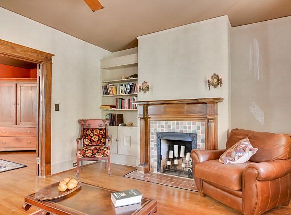This 1920s Mission Style Bungalow has been beautifully restored in the heart of Summerville. Great mix of original Hill charm with modern updates to include a metal roof, updated hot water heater, and added insulation. Recently painted stucco exterior and arched windows and doorways give this home distinct curb appeal. Wood floors and gorgeous fireplace mantle introduce the living room. French doors lead the way to a spacious dining room with an original light fixture! Kitchen features ceramic tile floors, tile backsplash, a pantry, and lovely breakfast nook with a glass front butler's pantry. Owner's suite has access to a private half bath. Second bedroom and second full bath retain historical charm. Large laundry room with storage space. Fenced yard, carport, and workshop round out this total package.
