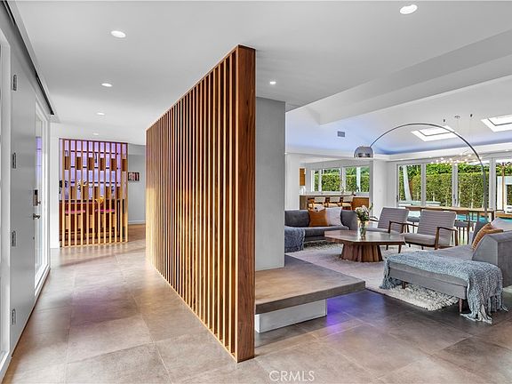 Experience refined living in this impeccably renovated Interstices Architecture designed Mid-Century Modern home. Emphasis on modern as multiple seven figures have been spent to modernize and redesign this single level masterpiece. As you enter the private, secured courtyard you will notice an Ipe wood deck complimenting the concrete pavers and lush landscaping surrounded by generous windows providing abundant natural light. Entering the home, you will find several custom Ipe wall features accenting the fireplace and bar with Porcelanosa tiles throughout the home. This sophisticated home blends mid-century modern design with contemporary style for the most discerning homeowner. Every square foot has been updated in the last few years. The spacious primary suite offers blackout shades and curtains, a lighted vanity area, custom designed closet and is adjacent to the spacious soaking tub, Marmara marble wall no curb shower featuring modern fixtures, and tranquil spa-like elements. Three more well appointed bedrooms and two and half more baths have all been renovated with the finest finishes. The chef’s kitchen is adorned with professional grade Wolf and Sub-Zero appliances, European style soft close wood cabinets and sleek brown silk granite waterfall eat in breakfast counter adjacent to the walk-in pantry complete with skylight. The living and dining area feature full height retractable glass doors creating a seamless transition between indoor and outdoor living. Outside, the lush landscaping adorns the privacy height fence while enclosing the saltwater pool and spa and Ipe wood deck. The outdoor living area is highlighted by the outdoor kitchen and features a built-in BBQ, beer dispenser, refrigerator and sink for endless entertaining. The large 12,053SF lot includes a spacious driveway leading to a two-car garage with electric vehicle charging capabilities and a temperature-controlled home gym. The entire home is controlled at the touch of a button by the Savant home automation system which manages each system in including security, temperature, lighting, home theater, music and can be programmed to set themes for every time and mood. This exceptional 3,625SF home is located in the sought after Estates section of Park Estates near renowned shopping, dining, parks, and schools and presents a unique opportunity to experience modern luxury at its finest.