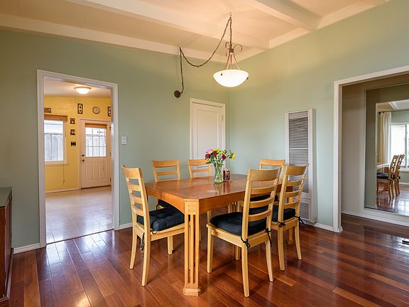 Charming single family home with inviting front yard, 3 bedrooms with Master Suite, 2 full baths, a welcoming, bright living room with larger windows that brings in natural light, exposed beam ceilings, nicely updated kitchen with granite countertops, 5-burner gas stove, new fridge, stainless steel appliances, double pane windows, hardwood floors through out. Spacious enclosed backyard with fruit trees and a healthy organic vegetable patch. Lot backs to a waterway - expect duck sighting!
