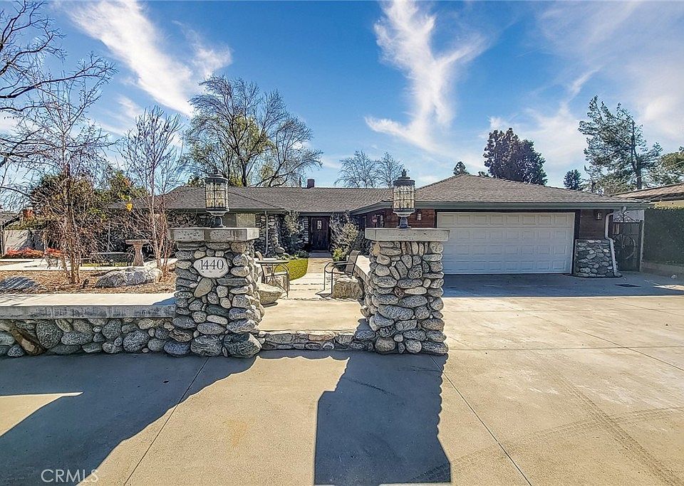 Situated on a large lot at the base of San Antonio Heights is a very special, one-of-a-kind property. Custom designed front door and river rock exterior. Living room with rounded brick fireplace with raised hearth. Spacious dining area with raised wood beamed ceiling, gourmet kitchen with 6 burner gas cook-top, Brazilian granite counters, brass towel racks, large walk-in pantry with glass door, quality stainless steel appliances, sinks, custom cabinetry and finishes. Off the kitchen is a spacious game room with built-in seating. Pool table and accessoriess included. There are 5 bedrooms, including the main bedroom with a custom designed ensuite bath. A secret door opens to the walk-in closet and bath. A spacious study with wood beamed ceiling is currently used as a bedroom. Detailed tile work in the laundry area and adjacent bath with large walk-in shower.. Built-in shelving in hallway, closets and storage throughout. Whole house fan, tile flooring, The covered patio, outdoor fireplace and Bar-B-Que are the ideal space for family gatherings and entertaining. The sparkling pool, spa and sports court are ready for family fun! There is a play house, tree house, sheds and a finished outbuilding currently used as a work out room. It is a great space for a home office, artists studio, music room, workshop or anything you might imagine. There is plenty of space for parking multiple vehicles, boats and RV parking with all amenities needed for your camping trips and travel. Enjoy the views of the foothills, the snow capped mountains and the beauty of this tranquil setting - a wonderful place to call home. Many upgrades and improvements made with quality construction from start to finish.