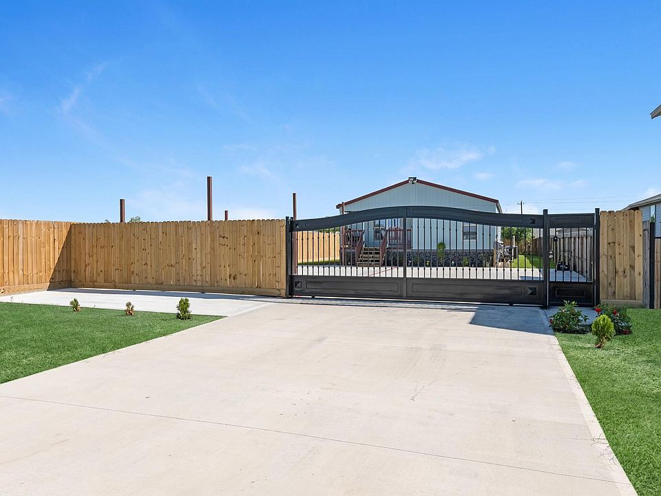Double-wide Mobile Home with Block & Beam foundation. Fully fenced all around. Remote controlled Automatic Iron gate. Concrete Parking slab to fit 6 cars behind the gate. Backyard with grass. Laundry room and extra storage room inside the house. Porch on the front. Primary bathroom has a tub and a shower and 2 sinks. No carpet in the bedrooms.
