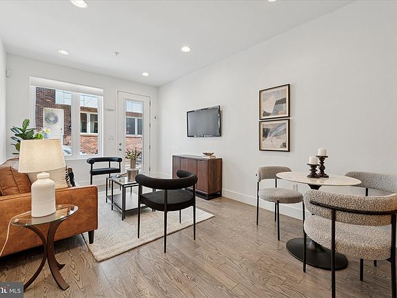 Welcome to this beautifully crafted, bright, and airy 3-story home in Point Breeze. Built just eight years ago, this residence offers modern design, high-end finishes, and a private rooftop deck with spectacular skyline views — all with a tax abatement in place until May 2027. Step through the impressive glass-paneled front door into an open-concept living space with soaring ceilings, oversized energy-efficient casement windows, and sleek grey engineered hardwood floors. The center staircase serves as a striking room divider and creates a perfect nook for a dining table while maintaining sightlines into the chef’s kitchen. The sunlit, eat-in kitchen features a large center island with seating for four, custom lighting, quartz countertops, white shaker cabinetry with under-cabinet lighting, a mosaic tile backsplash, pot filler, gooseneck faucet, and an undermount stainless-steel double sink. Upgraded LG stainless-steel appliances include a French-door refrigerator, 5-burner range with chimney hood, under-counter microwave, and ultra-quiet dishwasher. The backyard is perfect for entertaining, complete with flagstone-style stamped concrete, a natural gas line for your grill, and a 6-foot privacy fence. Upstairs, the second level hosts two generously sized bedrooms, each with double-wide closets, recessed lighting, and ceiling fans. This level also includes a full bath with soaking tub and travertine tile surround, as well as a hallway linen closet. The entire third floor is a private primary suite with a walk-in closet beside the spa-like bathroom featuring imported Carrera marble, a frameless glass shower with dual shower heads — including a ceiling-mounted rainfall — two large windows, dual vanity, and a separate water closet. From the third level, head up to the pilot house with a wet bar and wine fridge, which leads to your private rooftop deck, where you’ll enjoy breathtaking views of the Center City skyline, Benjamin Franklin Bridge, and Walt Whitman Bridge. The fully finished basement offers additional living space ideal for a media room, home office, or guest suite, complete with a full bathroom, laundry/utility room with sink, and extra storage. Additional features include the fire sprinkler system and energy-efficient windows throughout. This move-in ready home combines space, style, and stunning views — all in a convenient Point Breeze location near the Broad Street Line and neighborhood favorites like Batter & Crumbs Bakery and American Sardine Bar.