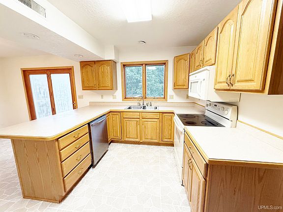 Welcome to this spacious 1998 ranch-style home, perfectly situated on a corner lot in a very convenient location near the hospital, schools, and quick access to many recreational trails. Step inside to a comfortable main floor featuring three bedrooms, including a private ensuite with a large walk-in shower. An additional full bath and a half bath add great function for family or guests. The U-shaped kitchen makes meal prep easy and opens to the dining area, where sliding doors lead to a large deck overlooking the lovely backyard—ideal for entertaining or simply relaxing outdoors. The walk-out basement offers even more living space with a fourth bedroom, a beautiful bath with another oversized walk-in shower, and an electric sauna for unwinding. Beyond these finished areas, the remaining space is already drywalled, (no floor or ceiling coverings) and ready for your personal touch—offering endless possibilities for a family room, hobby space, or home gym. Doors from the basement open to a covered concrete patio beneath the deck, extending your outdoor enjoyment. A three-car garage, thoughtfully separated into two spaces, provides flexible use. The heated two-car side keeps vehicles warm in winter, while the single-car side offers extra room for a workshop in addition to vehicle storage. While the home does need some TLC, it comes with a recent appraisal (available in the associated documents) and offers tremendous potential to create a home that truly shines. NOTICE: All information believed accurate but not warranted. Buyer is recommended to inspect & verify all aspects of the property & bears all risks for any inaccuracies including but not limited to estimated acreage, lot size, square footage, utilities (availability & costs associated). Real estate taxes are incomplete and will change (possibly significant), property will be reassessed by the municipality after sale is completed & buyer should NOT assume that buyer’s tax bills will be similar to the seller’s current tax bills. OFFERS: 3 business days to reply to offers please. Offers will only be addressed M-F 9AM-4PM. Pre-approval letter or proof of funds must accompany offers. Property will be transferred via a covenant deed. Seller, at seller's sole discretion, with or without notice, reserves the right to set and/or modify offer submission & response deadlines.