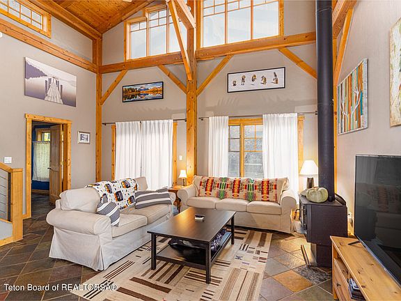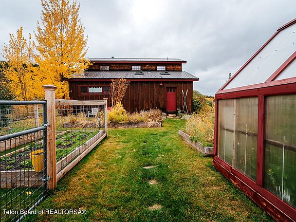 Custom timber frame home at the base of Teton Pass in Victor. Located just 30 minutes from Jackson this ideal commuter property boasts access to all activities both Summer and Winter! Current owners have built out a beautiful greenhouse and raised garden bed area, along with a 200 sq ft shed that has been used as a custom knife shop.