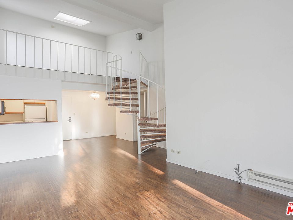 Top floor loft style 2 bedroom penthouse with approx. 20 ft ceilings in a 24 hr doorman building. The two story windows provide an abundance of natural light as well as views of the pool and courtyard area. The lower level features the kitchen, living room, master bedroom, and bathroom. A spiral staircase leads to the open loft/second bedroom. Building amenities include the 24 hour front desk/security, pool, spa, sauna, sun decks, koi pond, exercise room, conference rooms, and on site management. Conveniently located close to Westwood Village and UCLA, with easy access to the 405 Freeway. Across the street from Westwood Park with tennis courts, basketball courts, dog park, and more. Rent includes electricity, water, and trash. 1 parking spot included. Community laundry.