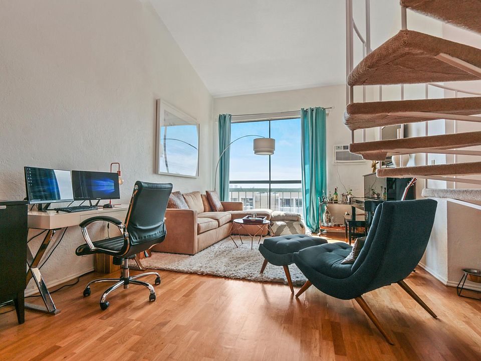 This beautiful resort style building is centrally located in the heart of Westwood. The complex features a 24 hour security guard, on-site manager, large gym with steam room & sauna, conference room & more. Imagine relaxing in the outdoor space that features; lush landscaping, waterfalls, pool & spa, koi ponds and turtles. This penthouse loft style 2 story condo has soaring ceilings in the living room with views of the city lights, park & tree tops. The kitchen has been remodeled with stone counters, newer cabinetry and stainless appliances. Flooring is mixed with hardwood in the living areas and carpet in bedrooms. The 2nd bedroom is the open loft overlooking the living room with a skylight. Updated bathroom with high ceilings and a skylight as well. A Large park with playgrounds, tennis and basketball courts is conveniently located across the street from complex. Close proximity to shops, grocery, restaurants, UCLA, Westwood Village. Rent includes utilities. Landlord pays electric,water,trash + 1 parking spot + use of all amenities. (potential option to purchase additional parking space)