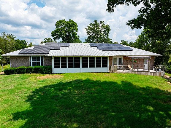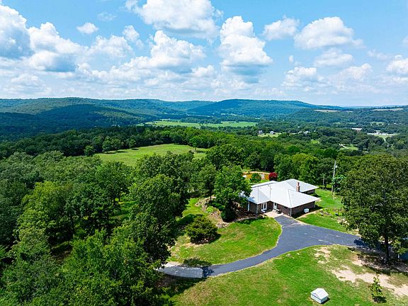 Nestled atop a serene hill, surrounded by the vast expanse of the Ozark National Forest, lies a hidden gem waiting to be discovered. This stunning home, perched on 40 acres of pristine land, offers an unparalleled escape into nature's embrace. The moment you turn onto the half-mile paved driveway from Peaceful Home Road, a sense of tranquility washes over you. As you meander up the drive, anticipation builds until you finally reach the hilltop, revealing the home in all its glory.The front porch, encased in glass, presents a breathtaking million-dollar view, stretching out over rolling pastures and majestic mountain ranges. It's a vista that promises daily doses of awe-inspiring beauty, whether you're watching the fog lift in the early morning or enjoying a vibrant sunset.Recent updates include a new metal roof, kitchen, pantry, and laundry room additions, and a resurfaced driveway. The property is equipped with Arkansas Valley Electric, Wave Rural internet, and excellent 5G phone coverage with T-Mobile. A reinforced bridge over the creek and a newly dug pond in the pasture are the finishing touches to this exceptional property.  Hilltop home in the Ozarks is waiting on you!