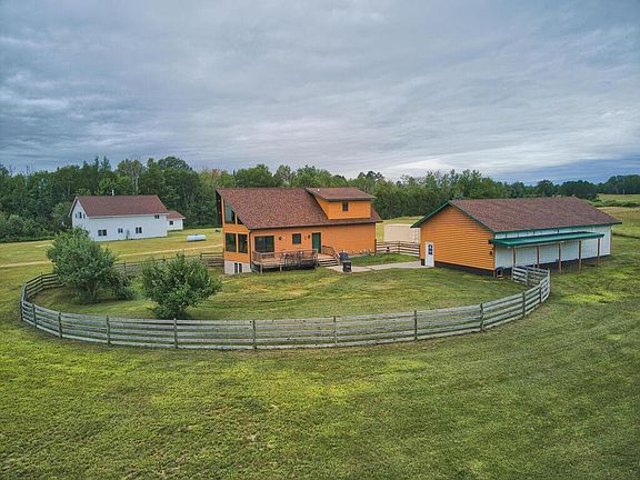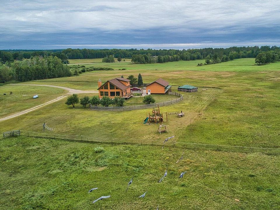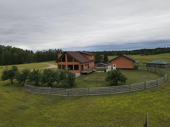 This private, 38+ acre homestead is located 12 miles from Grand Rapids, featuring a log-sided, chalet-style home with massive south facing windows providing great light, cultured stone hearth with Heat-N-Glow fireplace, and an open floor plan. The main floor and loft bedrooms are both ensuites with jacuzzi tubs/showers. Main floor laundry room and finished lower level with additional bedroom/office area featuring French doors, spacious L-shaped family room and 3/4 bath. Lots of storage throughout! The property also has a 60x150 indoor riding arena with 4 box stalls (3 insulated), Ritchie automatic waterer, fenced pastures with a loafing shed and a separate tack/tool shed. There is a 3-stall garage with great clearance, a deep 2-stall insulated and heated shop, and a 1600 sq ft bunkhouse/studio featuring murals by local Ojibwe artist Annie Humphrey. All the buildings (less the riding area) have new shingles in 2025 and the septic is compliant. The outdoors has great deer hunting, a fenced area and dog kennel, apple orchard with 3 different varieties, and a creative custom playground complete with zipline - great for the kids! Whether you are an equestrian, hobby farmer, or contractor, this property is for you! Property is priced well below market value.