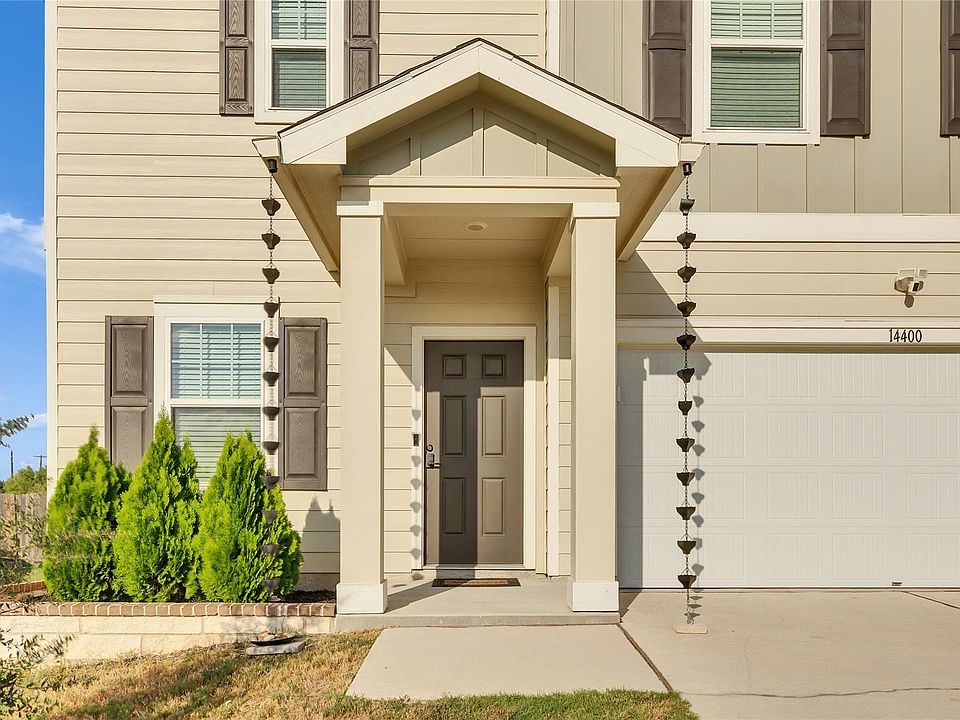 Welcome to 14400 Shooter McGavin, a stunning modern home tucked into a quiet cul-de-sac in Presidential Heights. Perched on a gentle slope with great drainage and wide frontage, this property offers both comfort and functionality. Inside, you’ll find bright natural light streaming through walls of windows, an open-concept layout, and a kitchen built for gatherings with a large center island and a walk-in pantry big enough to stock for any occasion. The spacious downstairs living area flows easily into dining and kitchen spaces, creating a warm and inviting atmosphere. Upstairs, you’ll find four bedrooms—each with walk-in closets and ceiling fans—plus a versatile flex space perfect for a game room, office, or media lounge. Out back, enjoy a private retreat that’s made for Texas living: brand-new landscaping, raised garden beds, a 20x20 gravel hangout area (ideal for firepits or playsets), and breathtaking sunsets from the back porch. With no rear neighbors, the property backs to a greenbelt and wide-open fields that burst with wildflowers, bluebonnets, and even blackberries in the spring. Upgrades include a smart thermostat, video doorbell, and Google Fiber gig-speed internet. The community offers excellent amenities, including a large pool, jogging trails, and a soccer field, along with a shaded pavilion for neighborhood gatherings. Plus, the location couldn’t be better—minutes from new restaurants, shopping, and conveniences in rapidly growing Manor, including H-E-B, Home Depot, Chick-fil-A, and more. Whether you’re entertaining friends, raising a family, or simply enjoying quiet evenings on the porch with endless views, this home offers the lifestyle you’ve been waiting for.