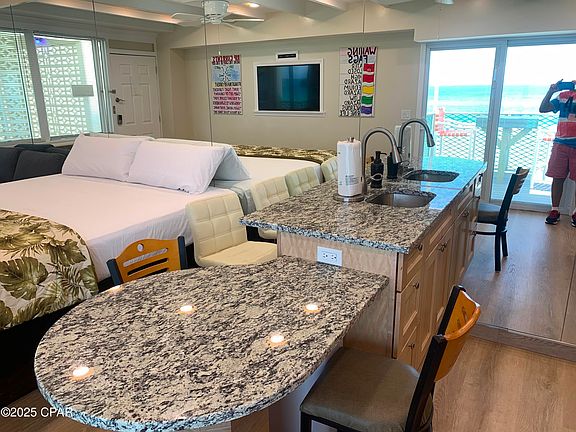 Experience the ultimate coastal getaway in this one-of-a-kind beachfront studio condo, uniquely positioned as the only unit overlooking the pristine sands of Panama City Beach and the Gulf of Mexico. Perfect for a vacation retreat, short-term rental, or a serene full-time residence, this condo combines modern luxury with coastal charm.