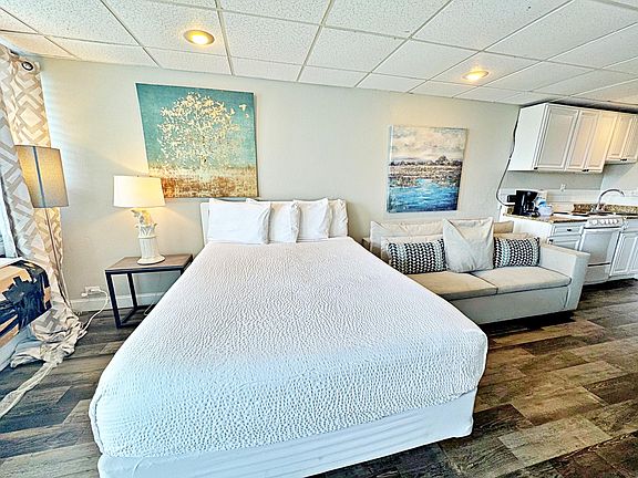 Charming fully furnished beachfront studio featuring sweeping water views facing east toward the open beaches of Bid-a-Wee. Recently renovated with laminate flooring, modern fixtures, and stylish furnishings--ready for immediate occupancy or short-term rental start-up. Situated on the 4th floor with convenient access via stairs or elevator. The community offers an updated pool, spacious decks for sunset views, an owner's lounge, fitness room, and outdoor barbecue area--popular amenities in a classic 1965-built complex.Value-conscious pricing in today's market--especially notable while special assessments are in place--makes this a rare Gulf-front opportunity. This unit offers excellent potential as a vacation retreat or investment property. Sellers encourage offers; schedule your showing today!