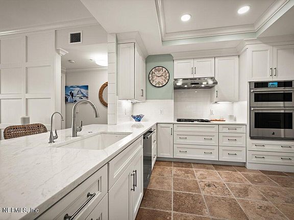 Bring your boat and live the Intracoastal dream! 50' boat slip is included! Enjoy waterfront views from your large balcony in this beautifully updated 2-bed/2.5-bath condo that comes with 2 reserved parking spaces. Live large in the open floorplan with lots of natural light, featuring a stunning kitchen with white Shaker cabinets, Quartz counters, breakfast bar and SS appliances. Retreat to the primary suite & spa-inspired bath with renovated shower and custom tile. The guest ensuite is equally impressive, with updated bath. Quality condo features include new wainscoting & trim, walk-in closets w/closet systems, new firesafe entry doors, Apple automation, plantation shutters & auto shades, and new recessed lighting, smart switches/outlets & fixtures. Close to Mayo, beaches, restaurants & shopping. Amenities include marina, clubhouse, gym, pool. Total monthly HOA fees $1890 (incl $160 monthly boat slip fee). Reserved garage parking space, storage unit + reserved outdoor parking spa