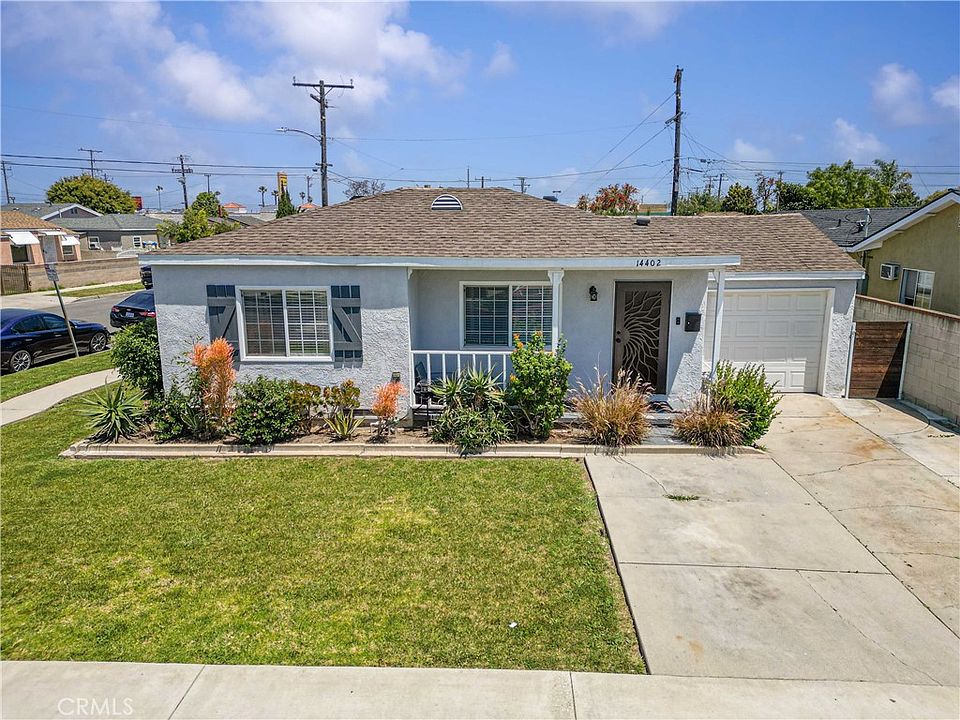 This beautiful home in the city of Compton features several upgrades and a large private backyard with new fence. It features a newer kitchen with quartz counters, tile backsplash and white shaker cabinets, newer double paned windows for natural lighting, and recessed lights for ambient lighting. Upgrades including new plumbing under the house, new heating and central air conditioning system with a vent that extends to the garage, new electric panel, automated sprinkler system, and water heater. Each bedroom has a wide closet with sliding doors for large storage. Tile flooring in the garage matches the modern look of the laminate flooring in the house. The driveway also has room for two car parking space. The property is conveniently located near shopping stores with access to the 91, 110, & 105 freeways. Due to an overwhelming amount of offers over asking price, seller has raised the price.