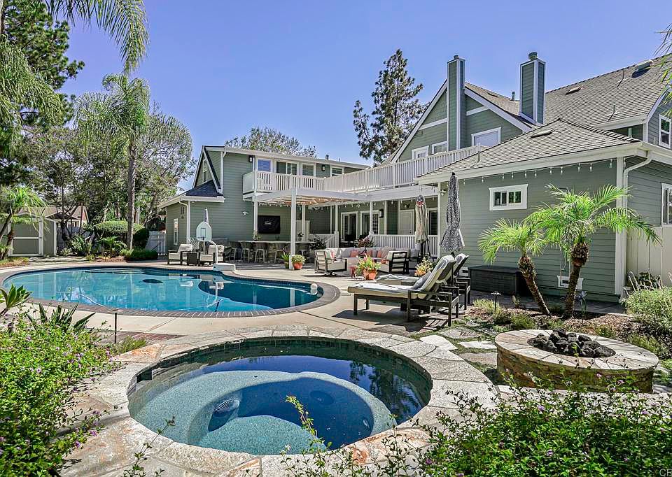Welcome to your dream oasis at 14403 Gaslight Ct, Poway, CA! This stunning single-family home, nestled on a desirable corner lot in a cul-de-sac, offers an expansive 4,113 square feet of luxurious living space. With five spacious bedrooms + a private office, many of the bedrooms are ensuite. Located in Old Poway, with walkability to restaurants, shops, schools and the park! As you step inside, you'll be greeted by dual pane windows that flood the home with natural light, accentuating the western exposure. The grand foyer leads you to a formal dining room, ideal for hosting dinner parties, and a versatile home office that fits your work-from-home needs. The chef’s kitchen is a culinary enthusiast’s delight, featuring a butler's pantry, Sub Zero refrigerator, Viking gas stove and range, an island kitchen, a dishwasher, and a wine cooler. Gorgeous marble tile in the kitchen with an extra 2 drawer freezer. The perfect entertainer's kitchen! Outdoor living is at its finest with a covered deck, a heated below-ground pool, and a hot tub, all set within a private yard. Entertain guests with a built-in barbecue, outdoor grill, and kitchen, or unwind by the fire pit under the stars. The meticulously landscaped front and back yards are complemented by a private patio and wrap around balcony. An ADU with attached bathroom and balcony overlooking the pool area has its own private entrance and has been completely upgraded. Additional features include central AC and heating, primary suite is on the main floor, a dedicated laundry room, and a dry sauna in the primary bathroom. This home is a sanctuary of elegance and privacy, offering a unique lifestyle that blends luxury with comfort. Don't miss this rare opportunity to own a piece of paradise in Poway!