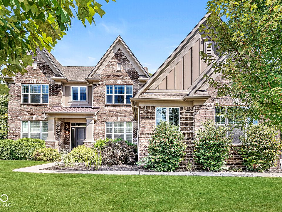 Welcome to over 5,000 square feet of thoughtfully designed living space in the highly sought-after Ridge at The Legacy community in Carmel. This 6-bedroom, 5.5-bathroom home is perfect for modern family living and entertaining. The exterior features brick and composite siding, a three-car garage, and a fully fenced backyard that backs up to a wooded area, offering privacy and serene views. Step inside to find hardwood flooring throughout the main level and a welcoming layout. Just off the entry, a main-floor bedroom with en suite bath and built-in bookshelves offers the ideal space for a home office or guest suite. The heart of the home is a nearly 700 sq ft great room, boasting a cozy fireplace and soaring two-story windows that flood the space with natural light. The kitchen features a massive island, double oven, abundant cabinetry, and a spacious walk-in pantry-ideal for hosting and everyday living. Upstairs, you'll find four generously sized bedrooms and three full baths, including a large primary suite featuring an en suite with a soaking tub, separate walk-in shower, and a custom walk-in closet. The finished basement features 850 sqft of recreation space, a bedroom which has been converted into a gym and a cinema room. Located just minutes from local shopping, dining, and with easy access to major highways, this home offers the perfect blend of convenience and comfort in one of Carmel's most desirable neighborhoods.