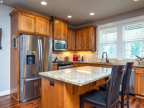 Pristine Oregon City home- One level w/ Huge bonus room and loft/office area up. Great rm floorplan w/hand scraped hardwoods, extensive wainscoting, kitchen w/slab granite & stainless appliances. Master suite with bath & walk in closet. 78' RV pad with full hook ups, shop/home-office/outbuilding w/concrete floors. Large covered patio, sprinkler system, dual water heaters. Looking for a home that is better than Brand new, this is it!
