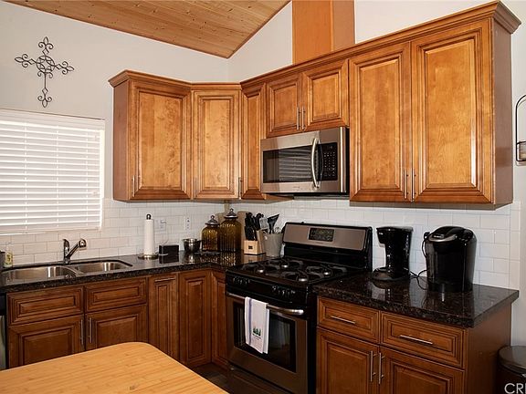 Seeking a turn key, newer construction single level home? This home sits in a cul-de-sac and is a newer built home so no "honey do's" for you! Park out front where you'll find ample parking. You'll notice beautiful Anderson double glass front entry doors & covered front porch. Walk in to a massive great open concept living-kitchen-dining room to find high tongue & groove ceilings with upgraded dual ceiling fans. Wood burning fireplace with natural stone tile faced surround sits in the corner. Stunning laminate flooring! The kitchen has a mountain home color scheme with neutral colors & granite counter tops & earth tone stone tile back splash, and stainless steel appliances. Enjoy entertaining from your kitchen while your friends hang out on the adjoining deck. Double pane windows and sliding glass doors are leading to the deck. Functional kitchen Island over looking the great room / living room that's the perfect place to entertain guests. Large master bedroom with a stunning master bath. Master bedroom & 3rd bedroom have decorator carpet. Middle 2nd bedroom has a private entry to a large deck overlooking the pine trees. Mirrored closet doors. Stunning bathrooms with upgraded tiled surrounds, frame less glass doors & beautiful tile flooring. Granite counter tops & high end cabinets! Tank less water heater. You can drive completely around the home if your heart desires. Some furnishings may be included if need be. Your home is ready for you today.