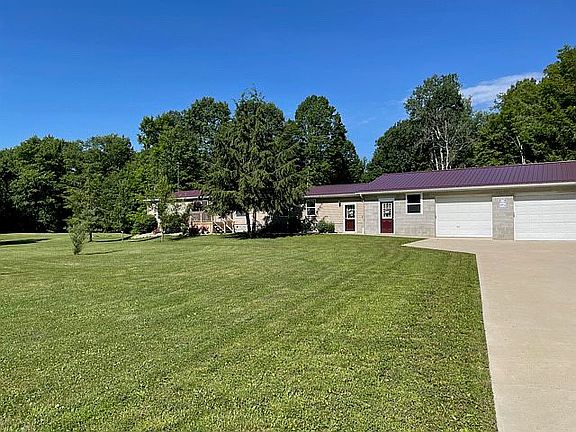 Outdoorsman’s paradise 57 acres a mix of wooded and clear. Enjoy the tranquil setting and yet you are minutes from local shopping and 79 . Furnace, ac, windows , siding , refrigerator, stove, huge back deck all new in 2015, Metal roof 2019, Brand new leaf filter gutter guards 2023. 30x30 pole building and cement driveway and sidewalk (2020) for all of your toys in addition to the oversized 2 car garage. Huge family room with laundry area and pantry. So much to offer come take a look!