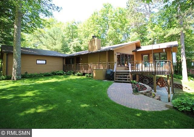 This is it! 3BR, 2BTH quality home with Redwood exterior, vaulted plank ceilings with solar tubes, Driftstone FP, den, 4 season porch, deck, full finished walkout, family room, utility room, mega storage, concrete patio, double garage, storage shed, Leaf Guard gutters, newer GFA furnace, A/C, beautiful paver brick walks, Keystone retaining walls, irrigation system, perennial gardens, paved drive, perfect elevation, and 100 ft of shore-all rip rapped. SPECTACULAR VIEW-YOU WILL LOVE IT!