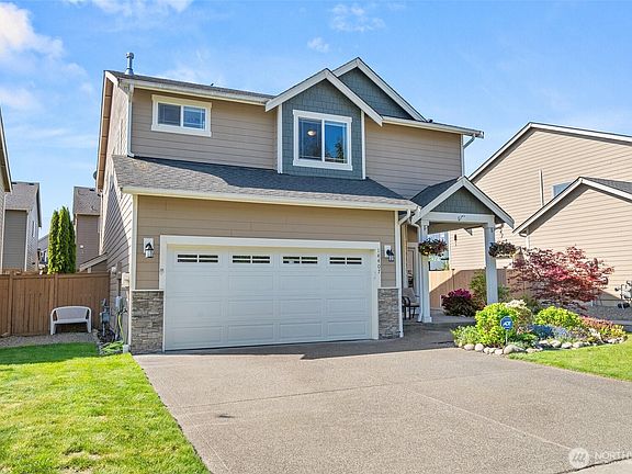 Charming 4-bed, 2.5-bath home in Yelm's peaceful Tahoma Terra community. Enjoy an open-concept layout with abundant natural light, cozy fireplace, and two living areas. The kitchen boasts granite countertops, stainless steel appliances, ample cabinetry, and spacious dining area. The large primary suite includes an en-suite bath with double sinks. Outside, a fully fenced backyard and pergola-covered patio offer ideal space for entertaining. Conveniently located near schools, parks, shopping, dining, and JBLM. This move-in ready home blends comfort and convenience—don’t miss it! Roof to be replaced prior to closing.