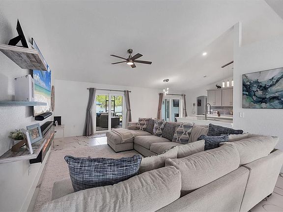 This beautifully renovated 4-bedroom, 2-bathroom home with a 2-car garage sits on an expansive 0.46-acre double lot - offering endless possibilities. Whether you’d like to build another single-family home, add a guest house, or have additional privacy, this property provides exceptional flexibility and value. Originally built in 2006, the home underwent a complete renovation in 2023, making it feel like new construction. Every detail has been thoughtfully updated, from the new metal roof with the 3rd nail for enhanced protection, to the high-impact windows, doors, and garage door for peace of mind. Step inside to soaring ceilings and an open floor plan that seamlessly blends style and function. The main living area and primary suite feature vaulted ceilings, creating a light and elevated feel. The kitchen is a chef's dream, boasting dual oversized islands, two sinks, quartz countertops, Schaefer cushion-close cabinetry, porcelain tile backsplash, and a two walk-in pantries with custom wood shelving. The split floor plan ensures privacy, with the primary suite tucked away as a true retreat where you can enjoy dual walk-in closets, and a spa-like ensuite bath. Outdoor living is a dream here - relax on the extended screened lanai in the 6-person hot tub, take a dip in the above-ground pool, or gather around the fire pit under the stars. Two storage sheds provide plenty of space for tools and toys, and with no HOA, you have the freedom to enjoy your property your way. Additional highlights include a 3-stage whole-home water purifier, reverse osmosis system in the kitchen, and modern finishes throughout. This move-in ready home offers the perfect blend of comfort, security, and versatility. Schedule your private showing today!