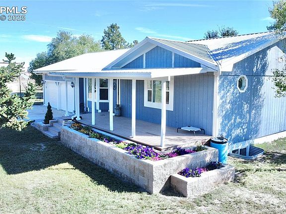 Experience the best of Colorado ranch living on this stunning 20-acre property in Peyton, CO. Surrounded by mature trees and wide-open space, this renovated 4-bedroom, 3-bathroom home blends comfort with country charm. Step inside to find new carpet throughout and a thoughtful layout designed for both relaxation and entertaining. With a Primary Suite on the Main Level and a second one on the Basement Level, this home offers versatility. A spacious covered composite deck provides breathtaking views of Pikes Peak and the Front Range, the perfect spot to enjoy Colorado sunsets year-round. The property offers exceptional amenities for hobbyists and outdoor enthusiasts, including a detached shop with RV parking, a storage shed, and a recreation range dug directly into the land. A vegetable garden adds to the ranch’s self-sufficient appeal, while a covered hot tub (negotiable) invites relaxation under the stars. The durable metal roof adds peace of mind, and the 2-car attached garage ensures everyday convenience. Utilities include propane and a private well, and with no HOA, you’ll enjoy freedom to truly make this property your own. Whether you’re looking for space to spread out, a retreat from the city, or a versatile property to fit your lifestyle, this ranch delivers it all with unmatched views and endless possibilities.