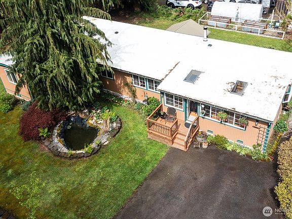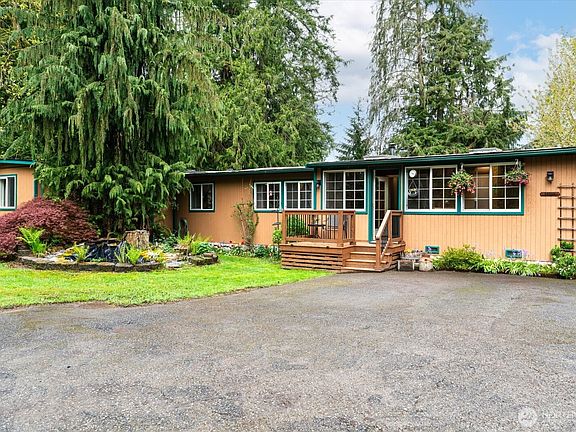 Private, Peaceful & close to town! Enter into the sunroom with loads of natural light, a big storage bench, & half bath. The adorable country kitchen is updated quartz counters, SS appliance and a garden window. Big living room with wood stove keeps you warm and your pennies in the bank! 3 bedrooms, full bathroom has jetted tub and Primary bdrm access. The 480 Sqft detached garage/shop has a small finished room for craft/ yoga/office, you decide! The peaceful yard offers a fountain, blueberries, raspberries, grapes, fruit trees a fenced garden with raised beds. Sit on your covered patio and enjoy the sounds of nature! This home is a single wide manufactured home but has had two stick frame add-ons, giving it the sqft of a double wide.