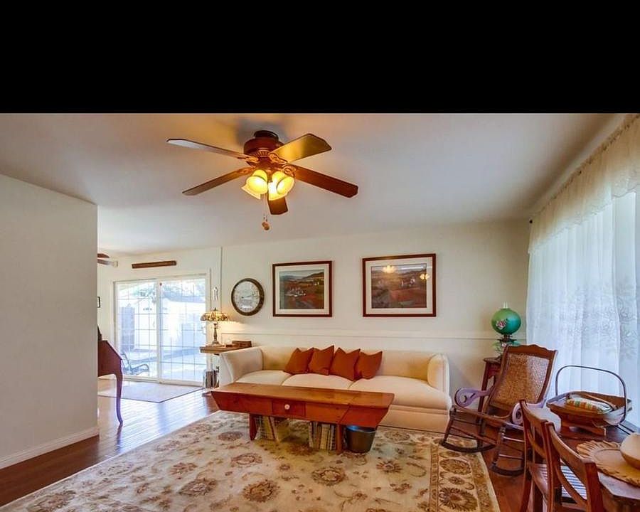 Gorgeous 3 bed 2.5 bath single story home in Poway! This beautiful home features dual pane windows, upgraded kitchen with new countertops & built-in microwave, gas cooktop, refrigerator, dishwasher. Large kitchen with wide open feel and lots of cabinet space and large pantry. Central Heat and air, and full sized washer and dryer in 2 car attached garage with built in storage. Upgraded master bath with stand-in shower, fresh paint, brand new wood flooring and new carpet in bedrooms throughout and lots of natural light makes this home desirable. Low maintenance backyard with beautiful mountain view. Backyard features BBQ grill, gazebo for relaxation and plenty of guest parking in front yard. Walking distance to top-rated Poway Unified elementary school and park, near shopping centers and all major shopping stores. Must see!! Owner favors $3450+ for rent. Renter responsible for utility and water expenses. No smoking in unit. Up to 2 small pets permitted.