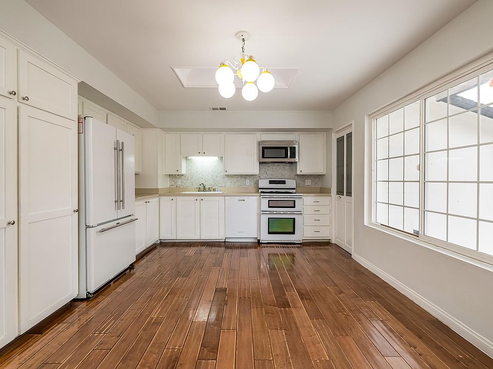 Gorgeous 3 bed 2.5 bath single story home in Poway! This beautiful home features dual pane windows, upgraded kitchen with new countertops & built-in microwave, gas cooktop, refrigerator, dishwasher. Large kitchen with wide open feel and lots of cabinet space and large pantry. Central Heat and air, and full sized washer and dryer in 2 car attached garage with built in storage. Upgraded master bath with stand-in shower, fresh paint, brand new wood flooring and new carpet in bedrooms throughout and lots of natural light makes this home desirable. Low maintenance backyard with beautiful mountain view. Backyard features BBQ grill, gazebo for relaxation and plenty of guest parking in front yard. Walking distance to top-rated Poway Unified elementary school and park, near shopping centers and all major shopping stores. Must see!! Owner favors $3450+ for rent. Renter responsible for utility and water expenses. No smoking in unit. Up to 2 small pets permitted.