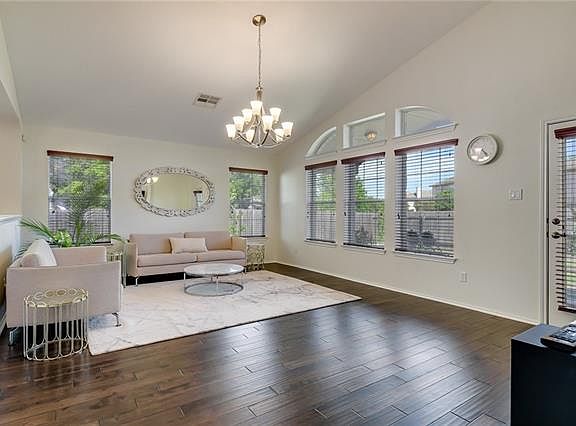 Gorgeous home located in Avery Ranch. 3 bed, 2 bath, large living room open to spacious kitchen, open floor plan, perfect for entertaining. One story home sits across from a peaceful nature preserve. 2 Living Areas: Formal Living & Family. Spacious Kitchen with granite counters, center island, gas range, wood floors in formal living, dining room, family room & office. Wonderful flex space for desks or additional storage. Large covered porch in backyard. Leander ISD, close to restaurants & shopping.