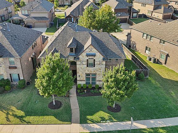 Seller allows the broker to advertise Rocket Preferred Pricing in the listing. This magazine worthy residence is nestled in the master-planned Grayhawk community, offering resort-style amenities that make every day feel like a vacation! Once inside, you are welcomed by an exceptionally gorgeous interior with sky high ceilings, an abundance of natural lighting, soft neutral colors, an elegant formal dining, and gorgeous hand-scraped hardwoods that flows throughout the main areas! The thoughtfully designed open concept living room and kitchen offers an open airy layout ideal for easy entertaining while cooking! Speaking of cooking----this gourmet kitchen shows like a model home & comes equipped with chef's grade stainless steel appliances, double ovens, gas burner cooktop, custom wood range hood, and gorgeous granite! The main-level split primary retreat had a vaulted ceiling, and showcases a spa-like ensuite with a dual granite-top vanities, a large walk-in closet, a spacious walk-in shower, and an even larger soaking tub where you can unwind after a long day. Also on the main level are a dedicated office with French doors, a guest bedroom plus a full bathroom tucked away on the other side of the home - perfect for a mother-in law suite or extended stay guests. An expansive game room, an adjoining theatre room with a wet bar, three additional bedrooms, and two full bathrooms complete the 2nd level. Step outside to a covered patio overlooking a large backyard with ample space for a trampoline, playscape, or garden area for green-thumb enthusiasts. Excellent location, near Monarch View Park and walking distance to the elementary and middle school. Quick access to major routes like the Dallas North Tollway, the new PGA World Headquarters, Omni PGA Frisco resort, abundant shopping, dining, and an array of entertainment—including the upcoming Universal Kids Resort, with construction currently underway! This one checks all the boxes and won’t last long!