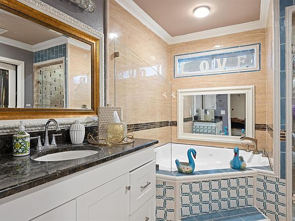 Nestled in the Austin Colony community, this charming 3-bedroom, 2-bath home, plus an office, offers a thoughtful blend of comfort and updates in a prime location. Freshly painted brand-new kitchen cabinets pair with granite countertops and crown molding to create an inviting culinary hub, while a water filter adds everyday convenience. The open living area features warm wood flooring that extends through the bedrooms, and tile accents add a sleek touch throughout. The primary bath offers a spa-like feel with a tiled walk-in shower and a soaking tub, while updated light fixtures brighten the home throughout. Outside, enjoy a huge backyard with a storage shed, a deck, and an outdoor kitchen and dining space—perfect for gatherings—plus low-maintenance turf in the front yard. The property includes a fenced yard and two-car garage, with an extended three-car parking driveway. Neighborhood amenities are just across the street, including a pool, basketball court, trails, and covered picnic areas, with Austin Colony Park within walking distance and Dailey Middle School only blocks away. Built in 2002, this well-maintained home blends timeless appeal with modern touches in an ideal Austin location.