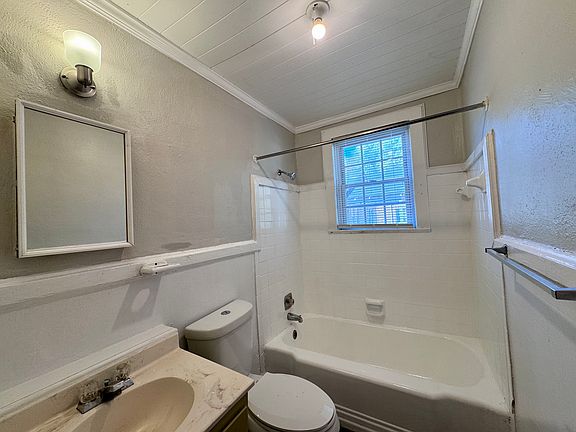 Outside, the property showcases a stately brick exterior accented with black shutters and a wrought-iron entryway. Mature landscaping frames the building, and residents enjoy a shared backyard and off-street parking. The Midtown location offers quick access to shopping, dining, and Uptown Columbus.
