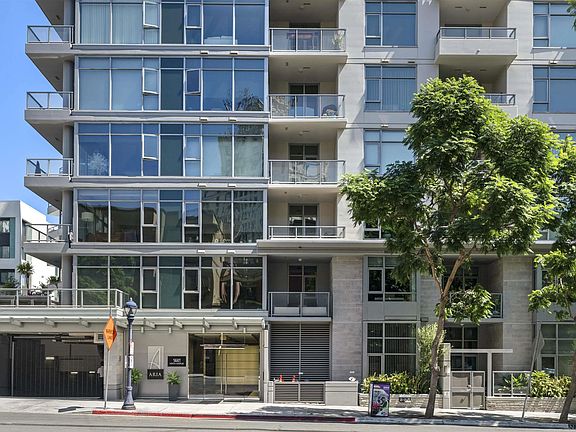 Welcome to Aria, located in the exclusive Cortez Hill neighborhood. This impeccably designed 3 bedroom, 2 bathroom condo with exceptional views and almost 1,400 square feet of living space could be yours! Floor-to-ceiling windows invite in a significant amount of natural light, which compliments the new vinyl plank flooring in the living room, kitchen, third bedroom (currently staged as an office) and hallway. The remaining two bedrooms have newer neutral carpeting and motorized shades were added in the primary. The kitchen offers a substantial amount of storage which extends into the pantry as well. The laundry room is equipped with washer and dryer and contains built-in storage too. The 19x8 balcony (about 150 square feet) provides exceptional outdoor living space and is a perfect spot to relax and enjoy the views. Aria residents enjoy a large pool, spa, fitness center and common area. There is also bike storage on the first floor of the parking garage for all residents. The unit offers two assigned parking spaces as well and is minutes from Little Italy, Gaslamp Quarter, Petco Park and the Embarcadero.
