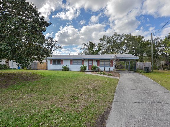 Active with Contract-Nice Affordable Family home. As you come up to the home you will notice the long driveway, with covered carport and large front yard. This home has a great layout . As you open the door you walk right into the living room with beautiful oak colored laminate flooring, recently painted neutral color. Next is the dining room that flows to the kitchen for easy serving. There is a larged enclosed air conditioned area on the back of the home has a full bath attached. This can be used as a Master or a family room. There are still 3 more bedrooms in the home with a guest bath just outside the hallway. A very large over-sized lot at .33 fully fenced in with winding oaks and plenty of room for activities with the pets and family. Great potential in this home. Come view today!