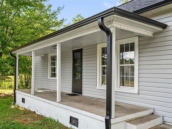 Don’t miss this beautifully refreshed bungalow, filled with charm and move-in ready! This home boasts gorgeous wood floors, tons of natural light, and a welcoming layout that flows with ease. The updated kitchen features sleek stainless steel appliances, granite countertops, and modern cabinetry—perfect for everyday living or entertaining. The renovated bathroom includes a stylish tiled shower, and updated fixtures, offering a clean, modern feel. Step outside to enjoy the large back deck overlooking a spacious backyard—ideal for weekend grilling or relaxing under the stars. A covered front porch adds extra curb appeal, while the detached storage building provides convenient space for tools and outdoor gear. Recent updates include roof 2023, gutters 2023, HVAC 2024, vinyl siding 2023, water heater 2023, and replacement windows—giving you peace of mind for years to come. Conveniently located near shopping and dining, this home is a must-see!
