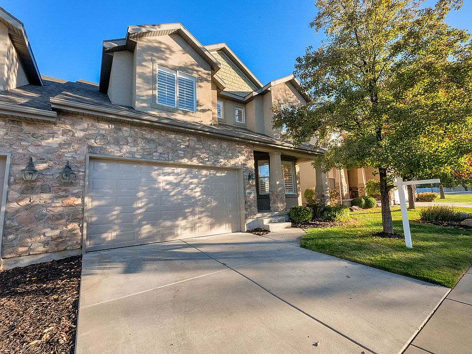 This 2-story twin home is located in an established, newer, quiet, and safe neighborhood. Single family owned since new. Spacious open floorplan features big windows, tall ceilings, beautiful mountain views and common area in the back including a pavilion with picnic tables and grill making it perfect for gatherings and entertaining. Nice plantation shutters throughout. Upstairs is a popular 3 bedroom with loft layout: primary suite with an ensuite featuring walk-in closet, private water closet, and separate tub & shower; plus 2 additional good size bedrooms and a full bathroom. Unfinished basement for extra storage space or room to grow. Easy to care for yard. Low HOA includes lawn care and driveway snow removal. New insulated garage door. Conveniently located near the canyons for world class skiing, hiking & biking. Enjoy a short walk to Sego Lily Gardens. Close proximity to great schools, shopping and a hospital. All inspections and evaluations have already been done and all repairs have been completed. Entire home has been professionally cleaned and is ready for quick move-in. Could benefit by having the hardwood floors refinished and the carpets replaced, however it has been priced accordingly.