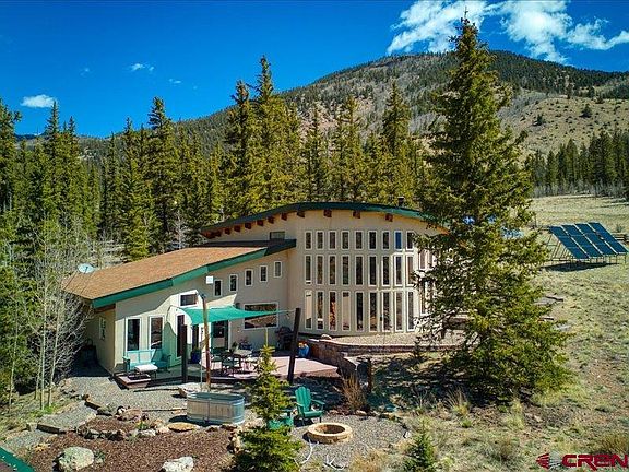 Discover an unparalleled retreat just 15 minutes from the storied town of Creede, Colorado. Tucked amid miles of unspoiled wilderness, this sophisticated three-bedroom, two-bath residence embodies refined mountain living at its finest. An inviting open-concept design showcases expansive picture windows framing sweeping vistas, complemented by artisan finishes throughout. The gourmet kitchen is appointed with gleaming granite countertops, premium appliances, and abundant custom cabinetry. At the heart of the living space, a Temp-Cast masonry wood stove with integrated pizza oven provides exceptional warmth and a touch of Old World charm, while radiant in-floor heating ensures effortless, energy-efficient comfort in every season. The thoughtful split-bedroom layout offers a private primary suite, an elegant media room, a spacious game room, and an airy loft ideal for an office or reading sanctuary. Outside, an expansive stone patio is perfect for entertaining or quiet relaxation, complete with a soothing hot tub overlooking the tranquil landscape. A detached office with a covered porch and wood-burning fireplace invites productivity in absolute serenity. An elevated observation deck—an inspired “treehouse” escape with commanding views of the flowing water below. Sustainably designed for luxurious year-round living, this estate is fully off-grid, powered by a state-of-the-art solar array (recently upgraded in Spring 2025 to double output), a 10kW backup generator, a private well, and a 5,000-gallon cistern. Property updates since going to market; 2 - 500 gallon cisterns with pumps/hoses and sprinklers. A pump/sprinkler system for the roof. Along with 2 - 300 gallon portable cistern/pumps that can be deployed from the back of a vehicle or tailer. You will find that the high-speed Ciello internet keeps you seamlessly connected to the world while you savor complete seclusion. This is more than a home—it is a sanctuary for those who value beauty, privacy, and a life well-lived.