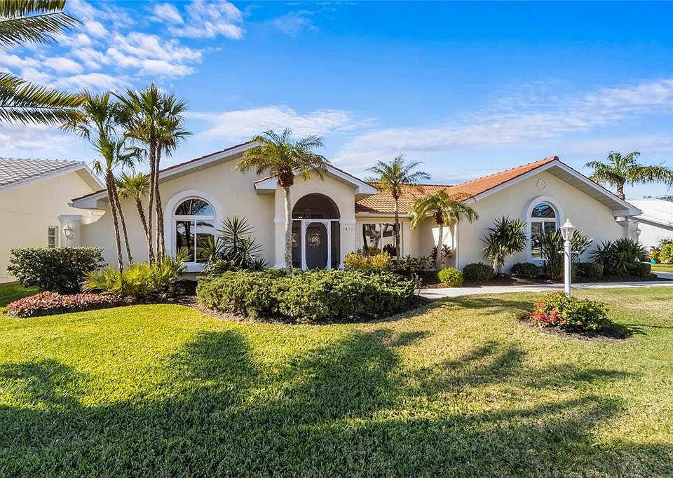 Welcome to your dream home in the heart of Venice, nestled in the highly sought-after Waterford community. This meticulously maintained 3-bedroom, 2-bath home boasts endless lake views from nearly every room, creating a serene and picturesque retreat. The split floor plan is thoughtfully designed, featuring Brazilian Cherry hardwood floors that flow throughout the home, complemented by soaring vaulted ceilings. Cozy up by the wood-burning fireplace on cool winter nights or take a refreshing dip in the oversized heated saltwater pool, surrounded by lush, mature landscaping for added privacy. Step out onto the western-facing lanai and soak in the breathtaking sunsets over the water. Recent updates ensure peace of mind, including hurricane impact windows and doors installed in 2019, a new pool heater added in 2022, and a completely replaced pool cage in 2023. For ultimate comfort, brand-new Hot Water Heater, HVAC and AC units were installed in 2024 for both the main house and the master bedroom. Golf enthusiasts will love the optional membership to Waterford Golf Club, offering 27 scenic holes that wind through the community. Just a short walk away, enjoy access to the state-of-the-art fitness center and the newly renovated community pool and spa. Waterford community also offers four Har-Tru tennis courts, with Pickleball courts coming in 2025! This home is perfectly situated only minutes from world-class beaches and the charming downtown Venice Island, where you can explore boutique shops, restaurants, parks, and more. Don’t miss the opportunity to make this stunning property your own! Schedule your private showing today and start living the Florida lifestyle you’ve always dreamed of.