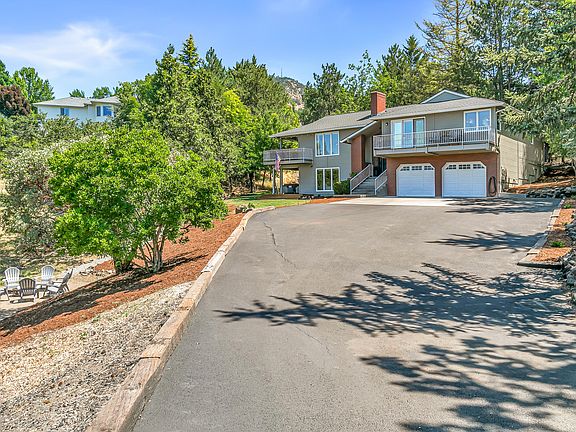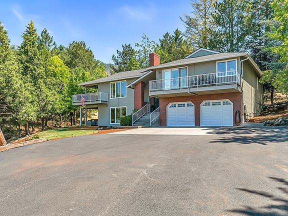 Exceptional East Medford property showcases luxury living on nearly three-quarters of an acre with breathtaking Rogue Valley vistas. The completely remodeled 5-bedroom home features a stunning great room with vaulted ceilings, built-in fireplace, and floor-to-ceiling windows that frame spectacular views. The spectacular kitchen boasts quartz countertops, walk in pantry, stainless appliances, and farmhouse sink. The master suite offers a private deck and spa-like bathroom with soaking tub, tile shower and dual vanities. The lower level provides flexible living with separate entry, two bedrooms, office, full bath with sauna, and great room with floor-to-ceiling windows - ideal for multi-generational living. Three expansive decks provide multiple outdoor entertaining spaces, while the private yard features playground, fire pit, and adventurous zip line, all bordered by a seasonal creek. Plenty of room for your toys with a large 2 car garage with workshop and storage. Amazing Home!