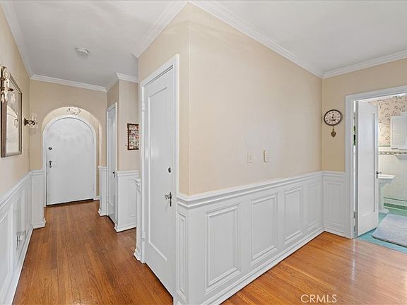 You will be delighted as you pull up to the front of this home. The property sits back off the street and has a lovely front lawn & walkway that leads you to the charming front porch. There you are beckoned to enter the house. You will find yourself stepping back in time & finding a gorgeous home that represents the quality craftsmanship of a bye-gone era. Enter through the doorway to find gleaming hardwood floors throughout the home. The living room is graced with a very rare, barrel ceiling and appointed with crown molding. The large picture window gives you a perfect view of the median on Euclid Avenue. The windows let in an abundance of natural light. There is a wood-burning fireplace and built-in niches for books or displaying your favorite art. There are French doors between the living and dining rooms that create a sense of separation without closing off the space. While this home is steeped in history it has been thoughtfully updated, providing the best of both worlds. The interior walls. molding & ceilings have been recently painted, as well as the exterior of the home. The FAH/AC has been replaced, there is a newer water heater and copper plumbing, and the roof has a newer waterproof membrane that was installed under all existing concrete roof tiles. The kitchen has also seen a thoughtful upgrade as it now boasts stainless steel appliances, granite counters & loads of cabinet space. The bathrooms are absolutely charming. One has been lovingly updated & the other is original, with an over 100-year-old sink that is in amazing condition!